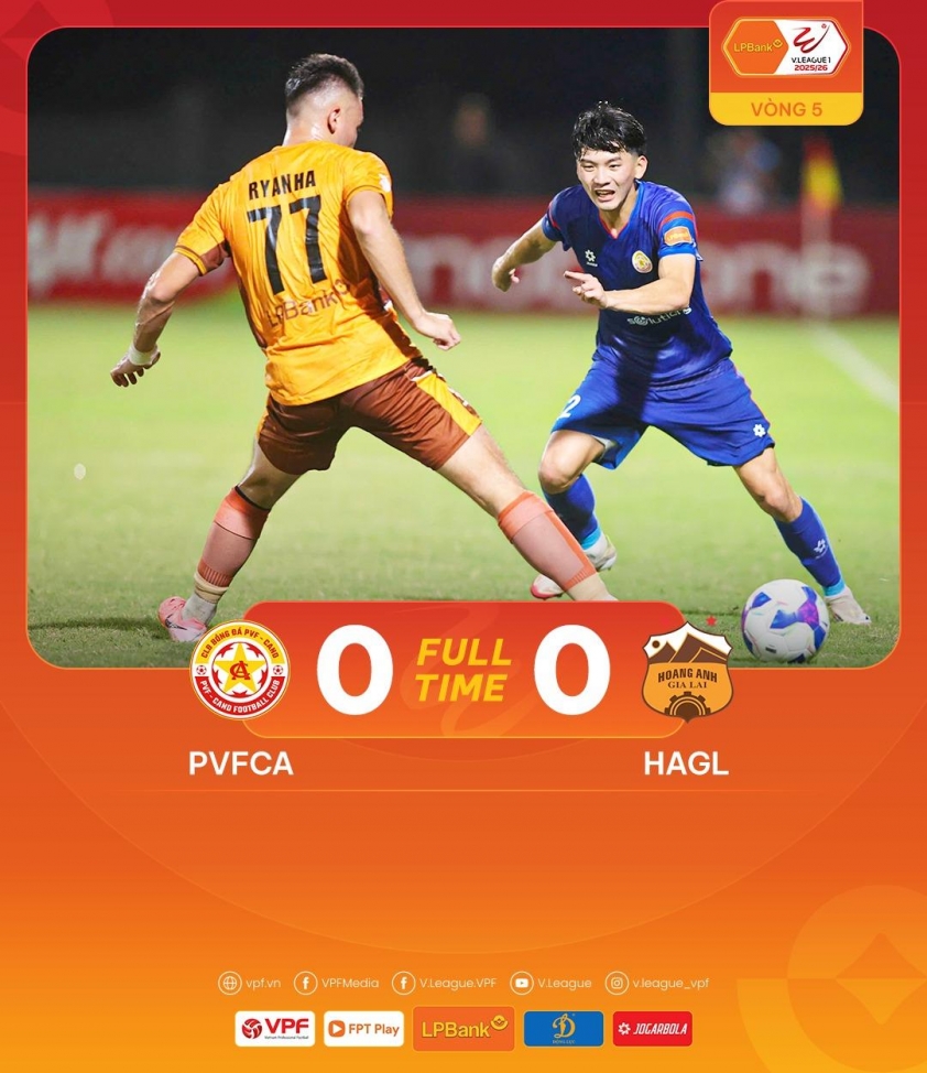 HAGL and PVF-CAND split the points in the round 5 fixture of the 2025/26 V-League.
