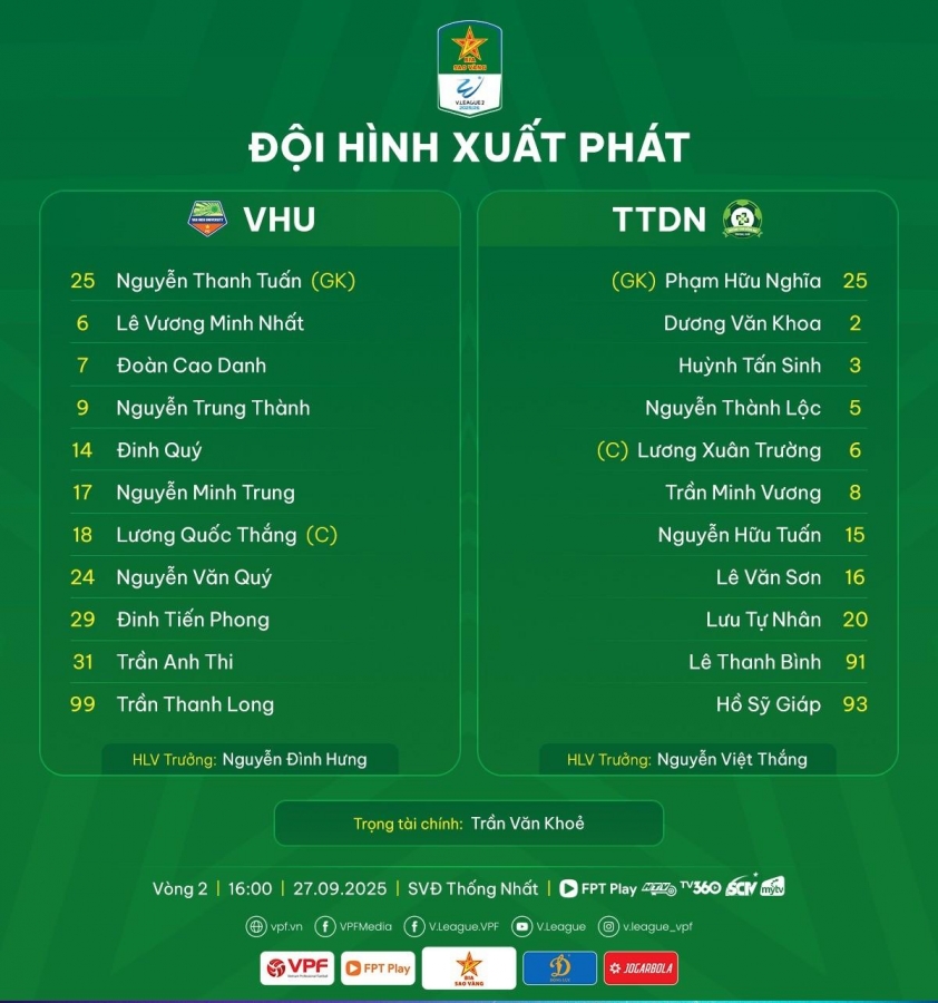 Starting lineups: Văn Hiến University vs Đồng Nai