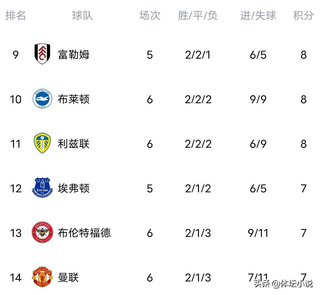 On September 28th Beijing time, the sixth round of the Premier League began. Among the key matches, Brentford triumphed 3-1 over Manchester United, Chelsea started well but lost 1-3 to Brighton, Crystal Palace scored a last-minute winner to defeat leaders Liverpool 2-1, Manchester City dominated Burnley 5-1, and Tottenham caused an upset by drawing 1-1 with Wolves. Consequently, the latest table has Liverpool leading, Crystal Palace second, Tottenham third, Sunderland fourth, Manchester City sixth, Chelsea eighth, and Manchester United fourteenth!