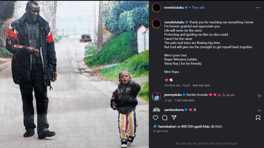 Recently, Romelu Lukaku shared a childhood photo with his father Roger on his personal Instagram, accompanied by a deeply emotional caption.