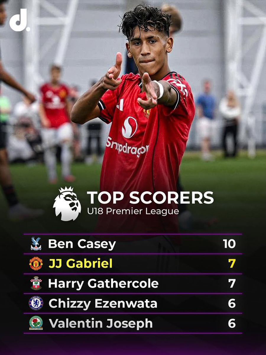 Fletcher’s standout player is the 14-year-old JJ Gabriel, who scored in the match against Manchester City. So far this season, he has netted 7 goals in 6 Premier League 2 games, ranking second on the top scorers’ list and scoring at least twice as many goals as any other Red Devils teammate.