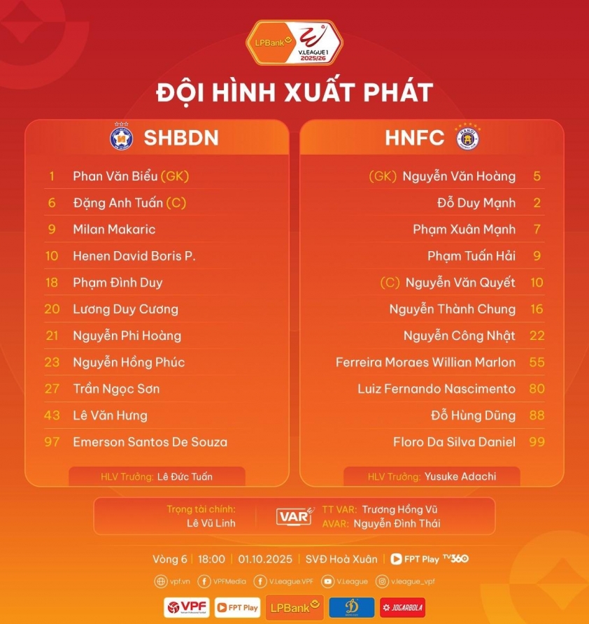 Hanoi FC overcame Da Nang with a 2-0 win in the 6th round of the 2025/26 V-League season, moving up to 8th place on the leaderboard for now.