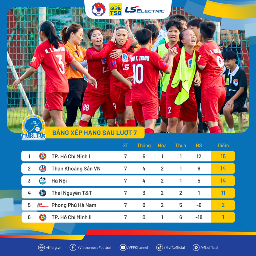 The first half was exciting but ended goalless. In the second half, star players made the difference. In the 58th minute, Mỹ Anh delivered a precise cross for Nguyễn Thị Bích Thùy to finish close-range and open the scoring for Thái Nguyên T&T. Hà Nội pushed forward seeking an equalizer but failed to convert, ultimately accepting a 0-1 defeat and surrendering first place to TP.Hồ Chí Minh I.