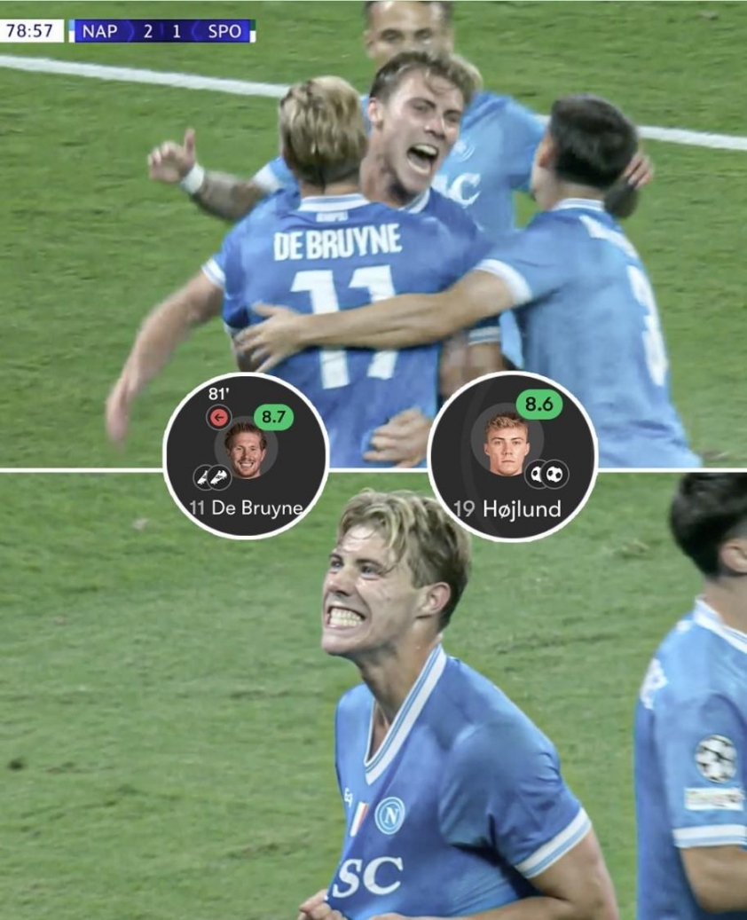 Meanwhile, at the Diego Armando Maradona stadium, Rasmus Hojlund also delivered a brilliant performance. The young Danish striker scored both goals in Napoli’s 2-1 victory over Sporting. In the 36th minute, from a counterattack started by Kevin De Bruyne, Hojlund broke through and calmly finished to open the scoring. Then in the 81st minute, he completed his brace with a powerful header, also assisted by De Bruyne. This was Hojlund’s third goal since joining Napoli, ending a run of three matches without scoring.
