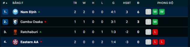 In the end, Nam Dinh secured a 1-0 victory away at Eastern AA. This result temporarily places the Vietnamese representative at the top of Group F in AFC Champions League Two with six points before awaiting the match between Ratchaburi and Gamba Osaka.
