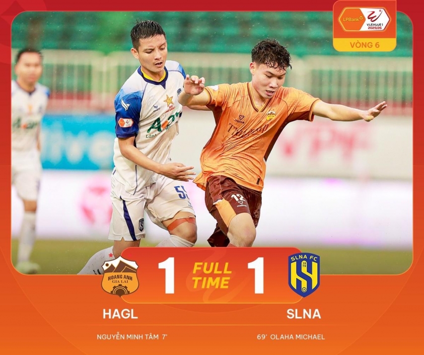 The match ended in a 1-1 draw. HAGL still has not secured their first win this season, while SLNA took away a precious point from the away game.