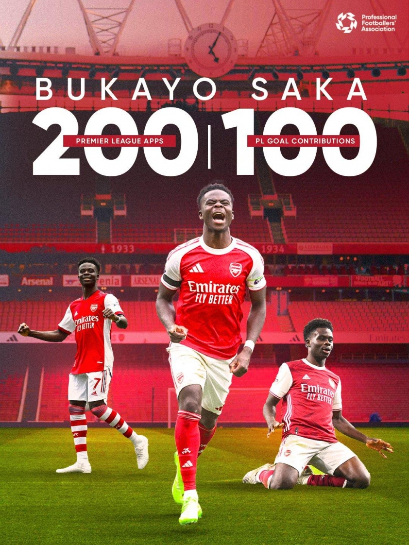 Coach Mikel Arteta praised his protégé without reservation: “What he has accomplished at this age is extraordinary. His impact in matches is very hard to achieve. I’m very happy for Saka. He is extremely consistent and always eager to learn. He knows how to find the net. He will continue to develop and hopefully keep bringing a positive influence to the team.”
