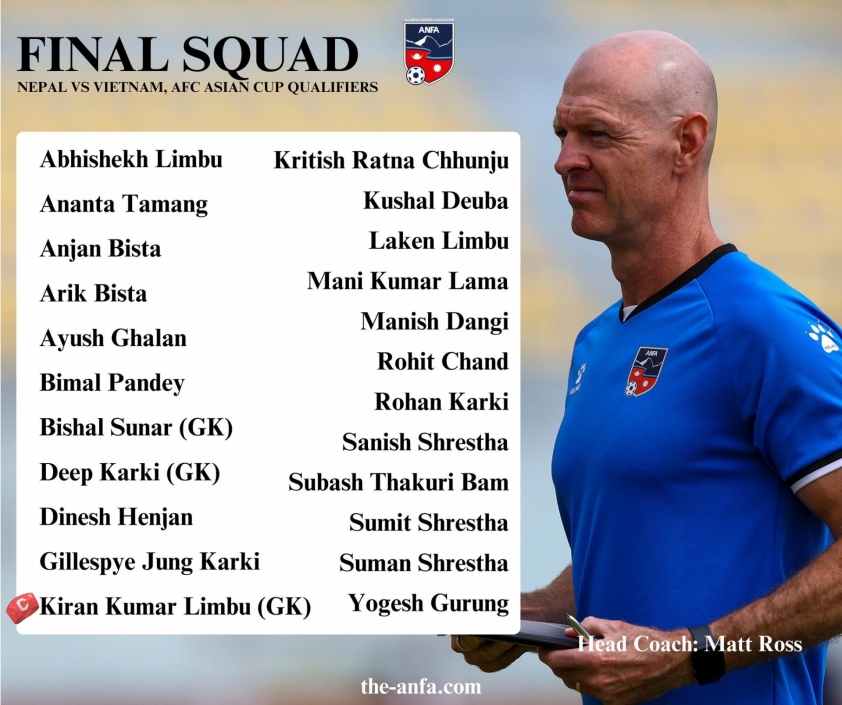 The Nepal national team has finalized the official roster of 23 players heading to Vietnam for the Asian Cup 2027 qualifiers.