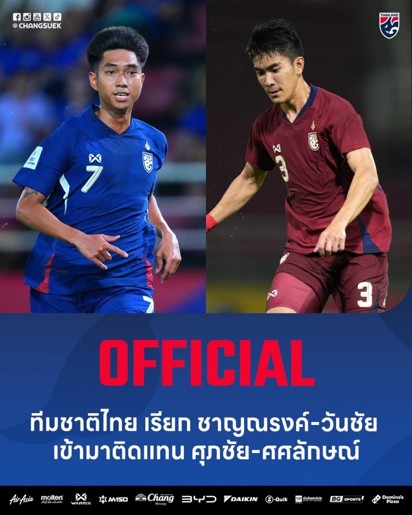 The Thailand national team made significant personnel changes ahead of their two matches in the 2027 Asian Cup qualifiers. Head coach Masatada Ishii decided to call up two new players: defender Wanchai Jarunongkran (True Bangkok United) and midfielder Channarong Promsrikaew (Chonburi FC), replacing Sasalak Haiprakhon and Supachai Chaided—both from Buriram United—who had to withdraw due to injuries.