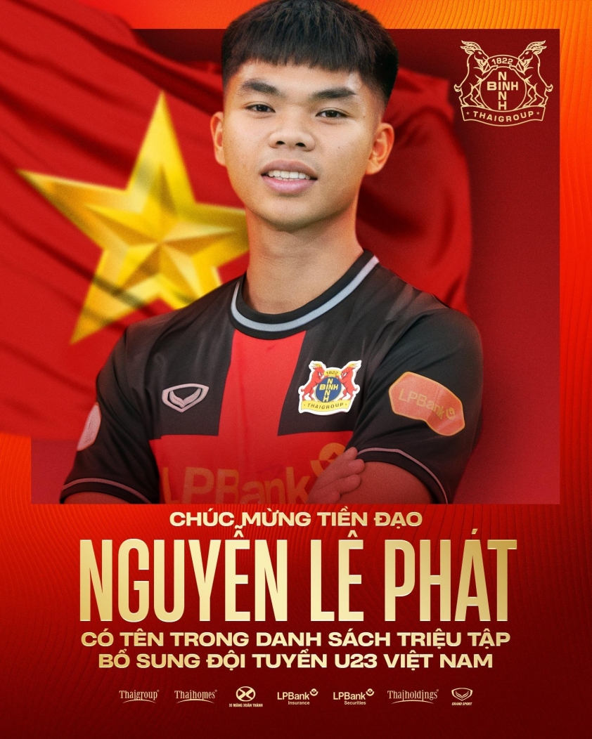 Young striker Nguyen Le Phat from Ninh Binh FC has been newly called up to the Vietnam U23 team for the October 2025 training camp.