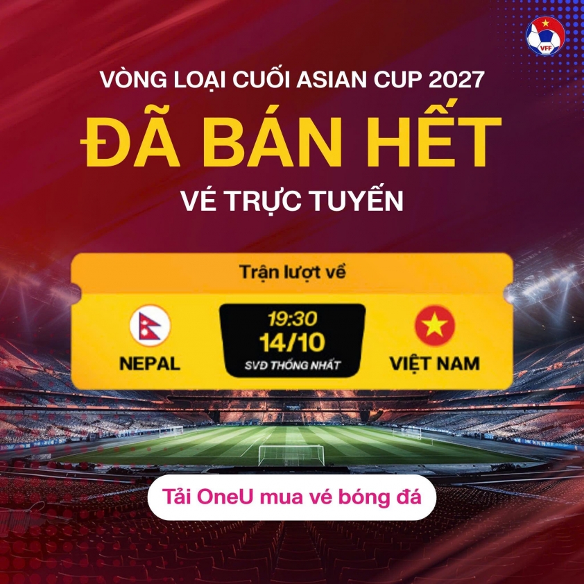 Although the second leg between Nepal and Vietnam at Thong Nhat Stadium is scheduled for October 14, as of the afternoon of October 7, the VFF confirmed that online tickets are fully sold. This indicates strong fan interest in the upcoming two matches of the Vietnam national team in the 2027 Asian Cup qualifiers.