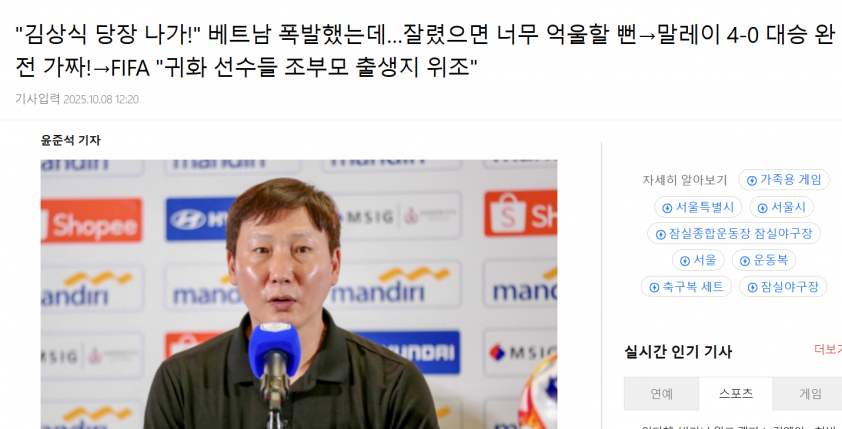 Recently, South Korea’s Xports News published an article supporting FIFA’s severe penalty against the Football Association of Malaysia (FAM) following Malaysia’s 4-0 victory over Vietnam in the 2027 Asian Cup qualifiers, highlighting that this result is linked to fraudulent naturalization paperwork for players.
