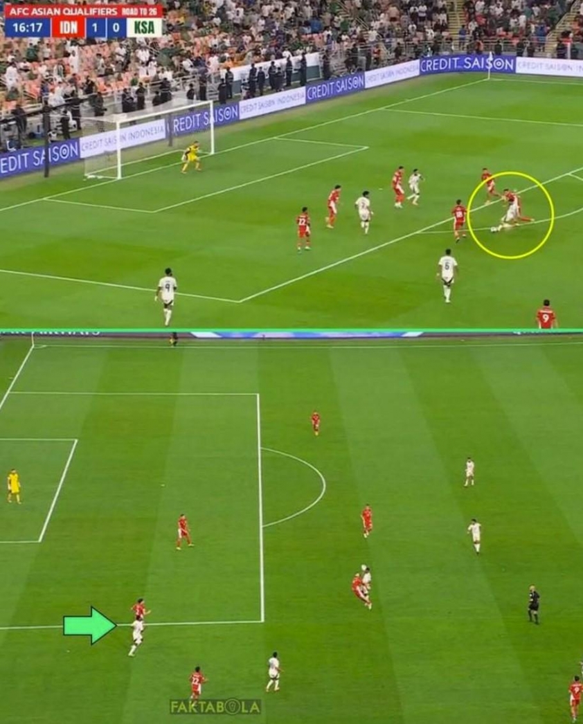 Just 6 minutes later, Saudi Arabia capitalized on a defensive error by an Indonesian defender to launch a quick counterattack. Saleh Abu Al Shamat struck a skillful left-footed shot to equalize at 1-1. VAR reviewed the goal, but it was allowed to stand, despite slow-motion footage suggesting a Saudi player may have been offside behind the Indonesian defense in the preceding play.