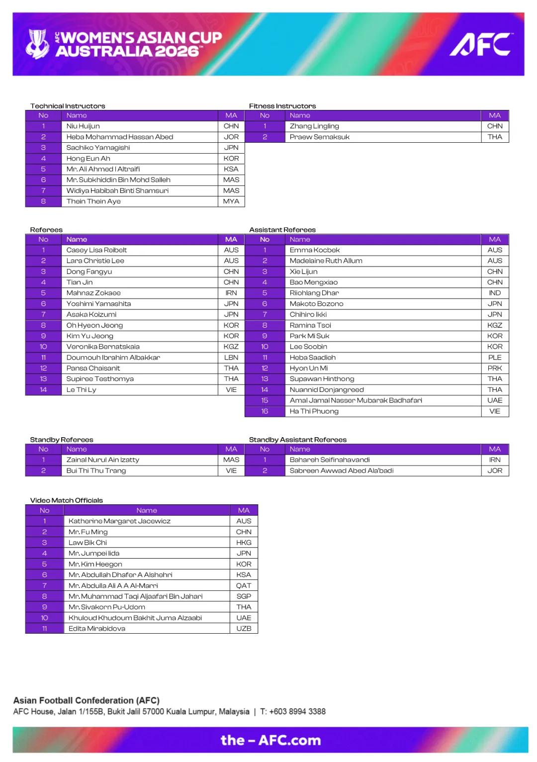 The list includes 45 referees, 13 more than the previous edition, the highest ever for the tournament. The Video Assistant Referee (VAR) system will be used throughout the competition, including the group stage, marking a significant upgrade in officiating standards for Asian women's football events.
