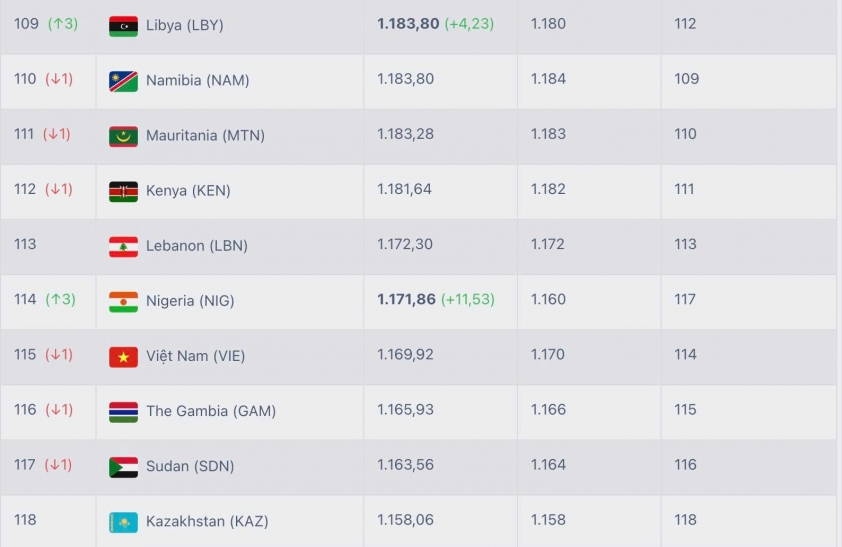 This drop is due to Niger’s impressive 3-1 win over Congo in the African World Cup qualifiers, which earned them 11.53 points and allowed them to surpass Vietnam in the FIFA rankings.