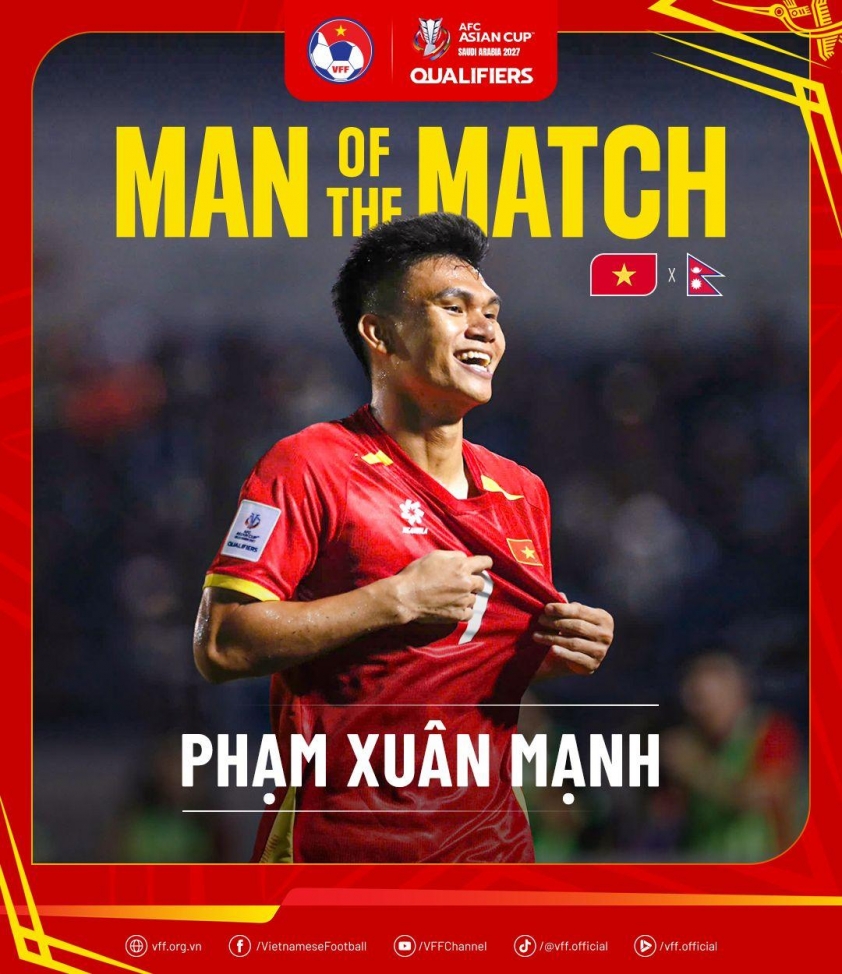 This goal holds great significance for the Vietnam team, who were struggling despite having a numerical advantage. After Nepal equalized at 1-1, coach Kim Sang Sik’s squad had several chances but couldn’t find the net again. Xuân Mạnh’s goal eased the pressure and Vietnam added one more goal to secure a 3-1 victory.