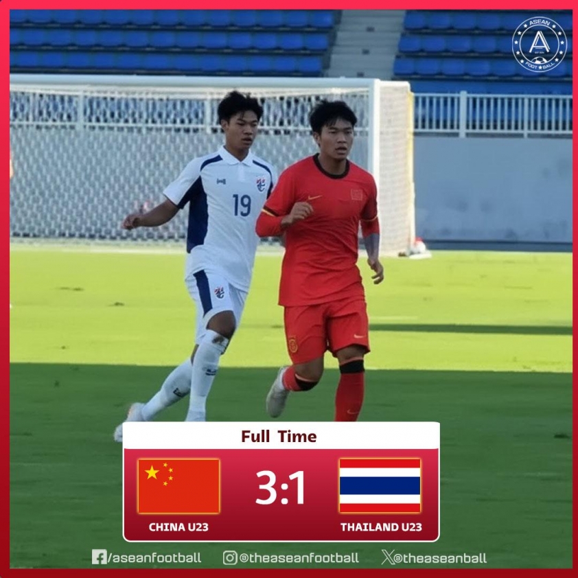 Notably, the match on October 10th between U23 Thailand and U23 China ended quickly with a 3-1 victory for U23 China. This was a closed training match with only the result announced. On October 14th, the two teams will have an official friendly at the Kunming Haigeng Training Center.