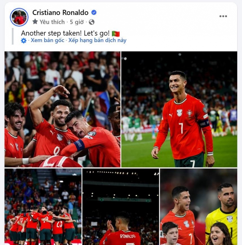 After the match, Ronaldo posted a brief message on social media: “One more step taken! Let’s keep moving forward!”,a strong statement reflecting his fighting spirit and confidence aimed at securing qualification for the 2026 World Cup. Although he didn’t score, Ronaldo demonstrated his significant influence on the field as a leader, always motivating his teammates during challenging moments.