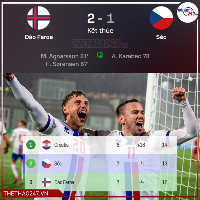 This miracle becomes even more astonishing when looking back at recent matches. Faroe crushed Montenegro 4-0 and then stunned Europe by beating the Czech Republic 2-1 in what was considered a major upset.