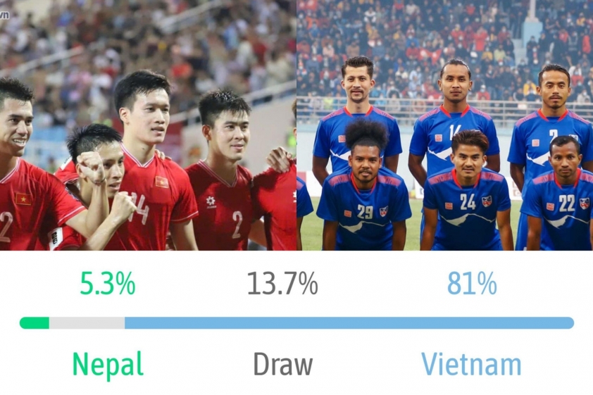 According to statistics from the ELO Rating, Vietnam holds an ELO score of 72 — significantly higher than Nepal’s 46. The winning probability based on ELO also highlights a clear dominance: Vietnam has an 81% chance of winning, whereas Nepal’s chances stand at only 5.3%, with a draw likelihood of 13.7%.