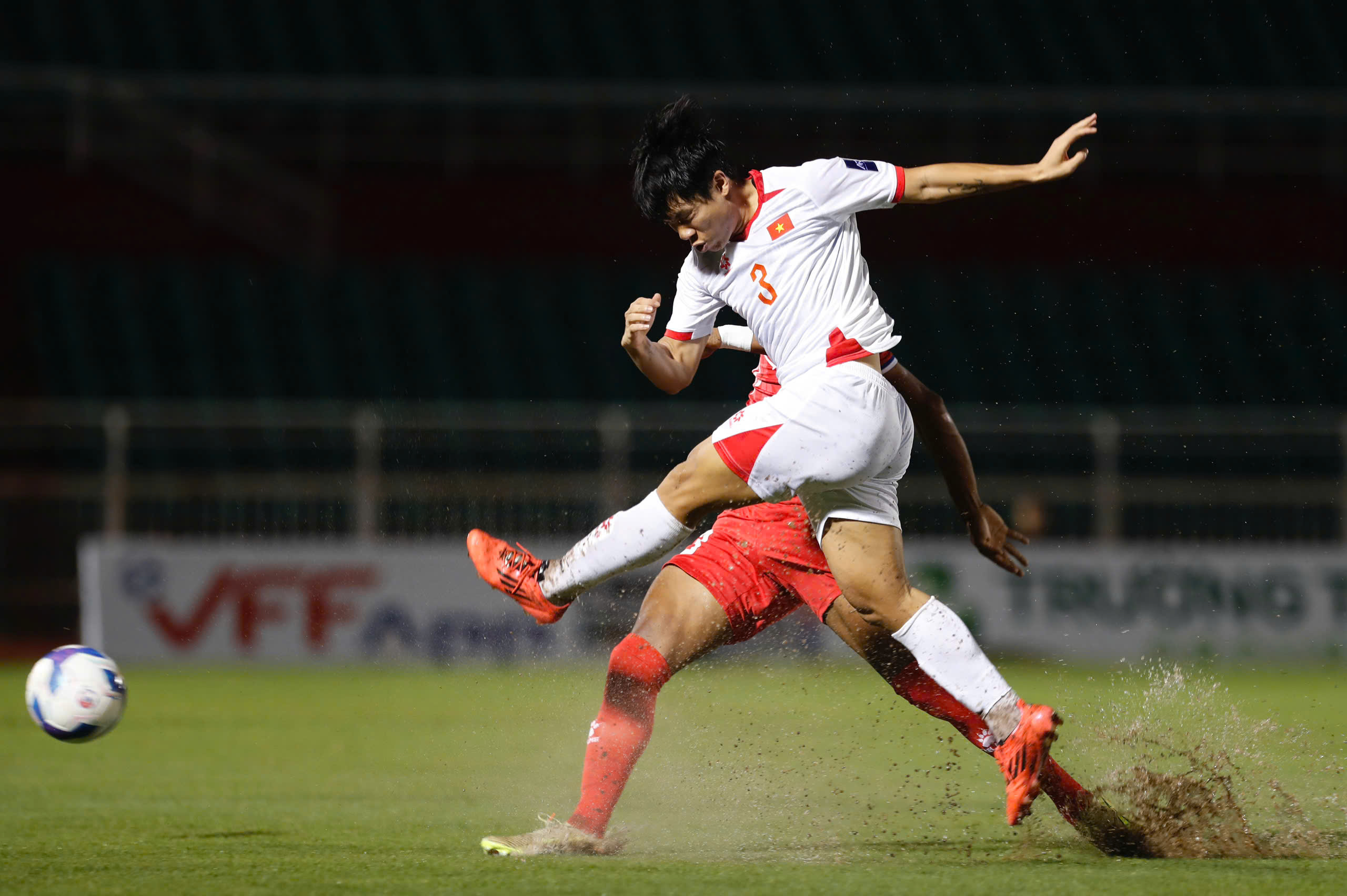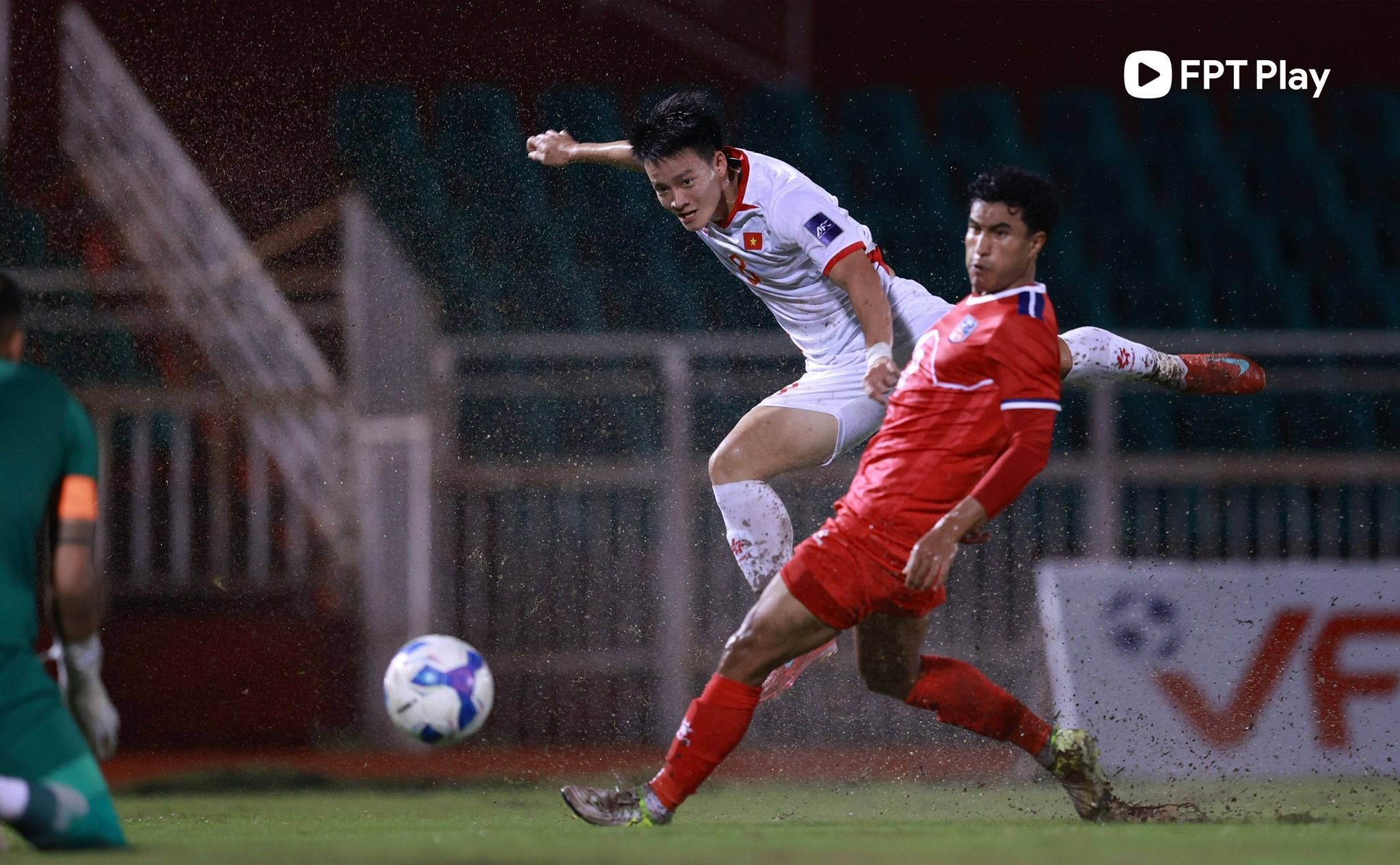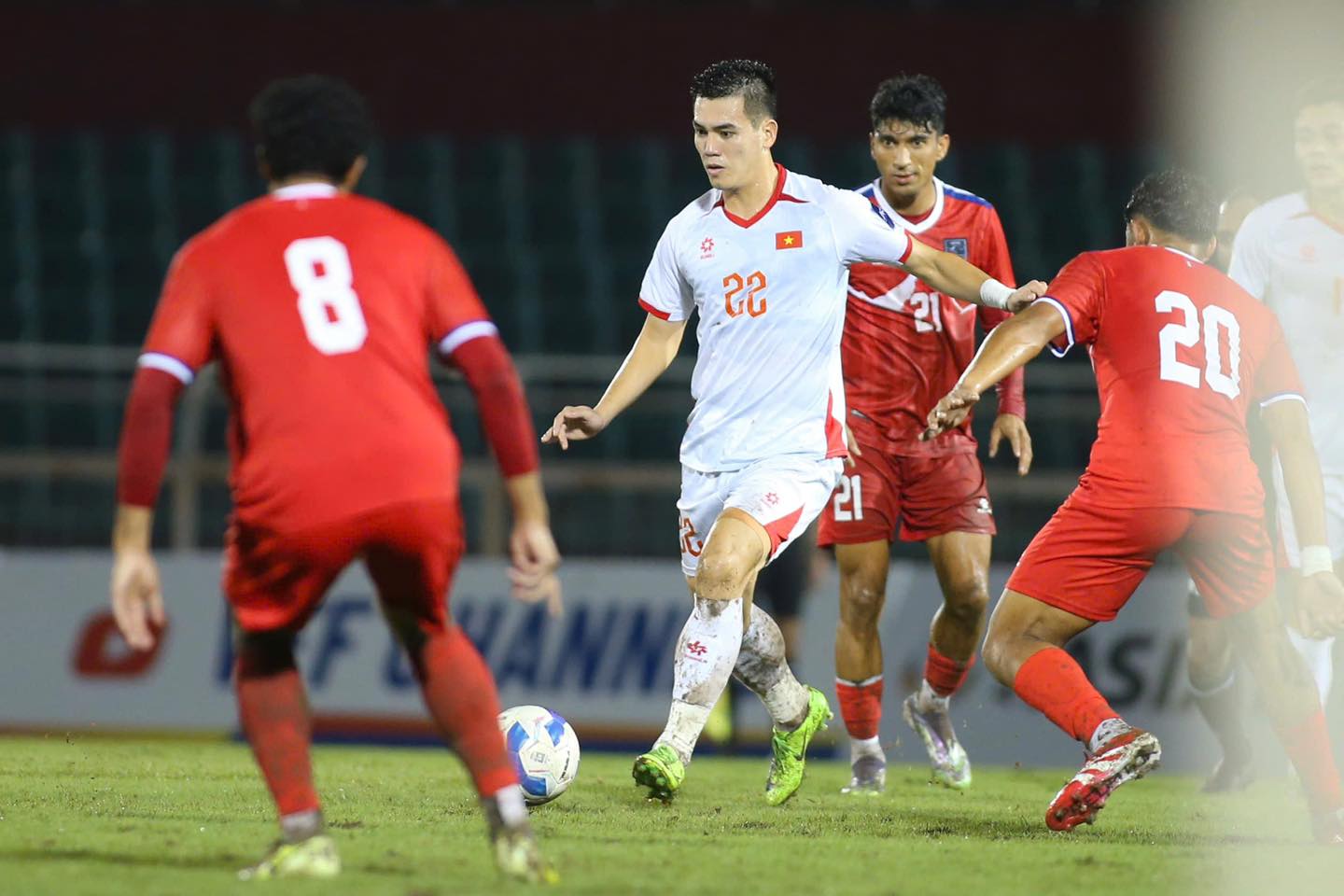 Vietnam’s defense held firm, conceding only one notable chance in the 2nd minute when Do Duy Manh slipped on the wet field, allowing Manish Dangi to break through. Luckily, a puddle disrupted the shot, and young goalkeeper Tran Trung Kien kept a clean sheet.
