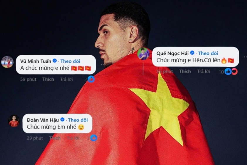 Among them, Đoàn Văn Hậu left a simple yet warm comment: “Congratulations to you.” Meanwhile, Quế Ngọc Hải wrote: “Congrats, Hên. Keep it up.”showing encouragement and high hopes for the naturalized player’s upcoming performances with the national team. Vũ Minh Tuấn also didn’t forget to send his wishes: “Congratulations, brother.”