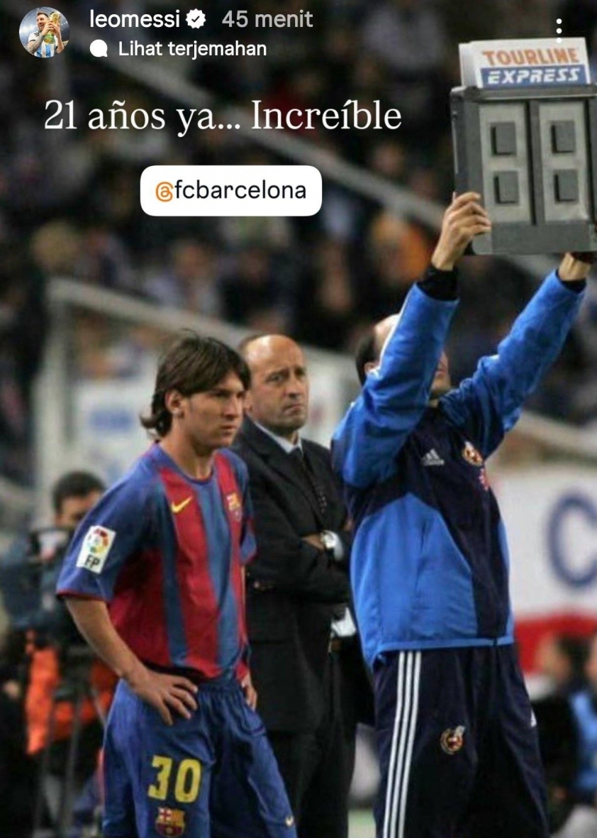 Leaving Barcelona in 2021 under regrettable circumstances, Messi joined PSG for two seasons before transferring to Inter Miami in 2023. On this special occasion, he posted a photo of himself in a Barca jersey on Instagram with the caption: “21 years... unbelievable.”