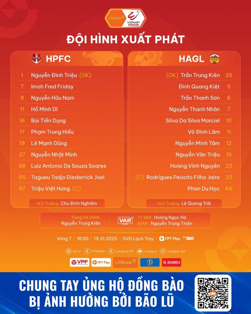 Live coverage of the Hải Phòng vs HAGL game in round 7 of the 2025/26 V-League.