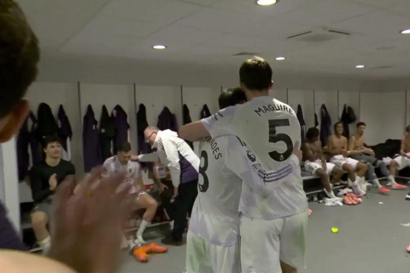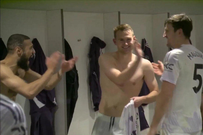 After the match, the atmosphere in the Man Utd dressing room was filled with joy. Maguire returned to cheers and applause from the entire squad, even receiving a hug from Bruno Fernandes, who assisted his goal. The players sang, danced, and captured this rare moment of happiness on away ground.