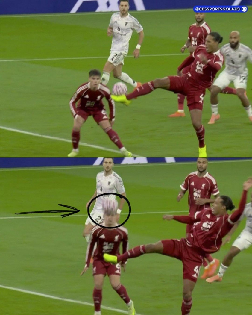Van Dijk collided heavily with teammate Alexis Mac Allister while contesting a high ball, creating a large gap in the central area that Manchester United’s attack exploited. Bryan Mbeumo took advantage of this opportunity to score early, while Mac Allister had to receive four stitches and wear a head bandage after the collision.