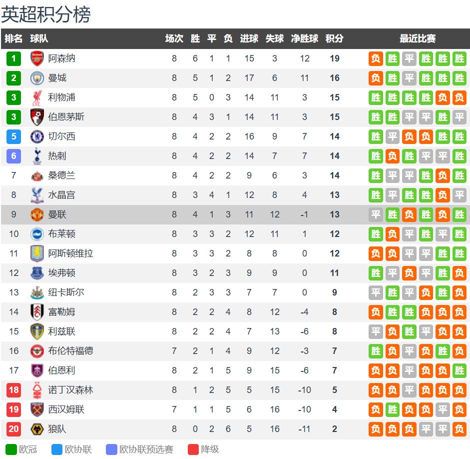 Home>soccerNews> After 8 rounds of the Premier League, the Big 6 occupy 5 spots plus Bournemouth, while Manchester United has won 3 of their last 4 games and is just 1 point behind the top six. >