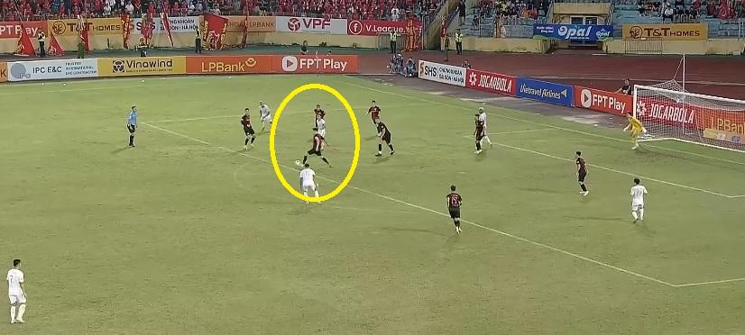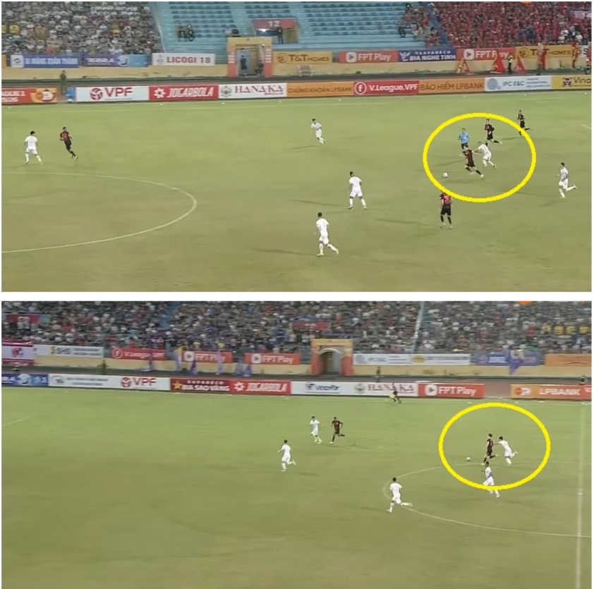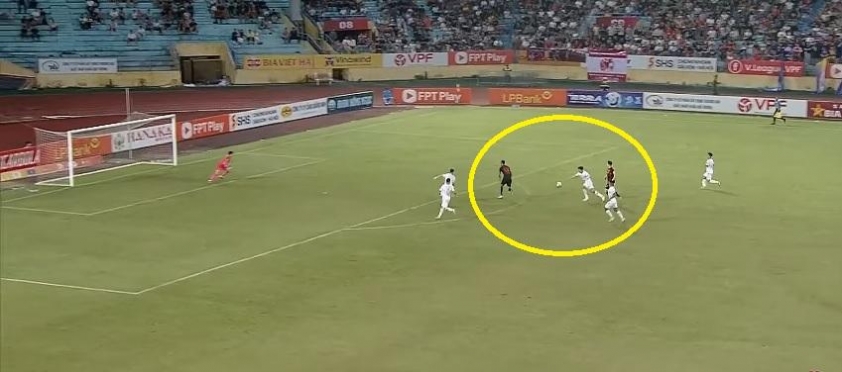 In the 65th minute, the Ninh Bình midfielder displayed a signature individual skill. He won the ball inside his own penalty area from a poor pass by Luiz Fernando, then dribbled past several Hà Nội players. Hoàng Đức skillfully bypassed Fernando, Vũ Đình Hai, and Thành Chung before delivering a perfect pass to Gustavo Henrique, though the shot was denied by goalkeeper Văn Hoàng.