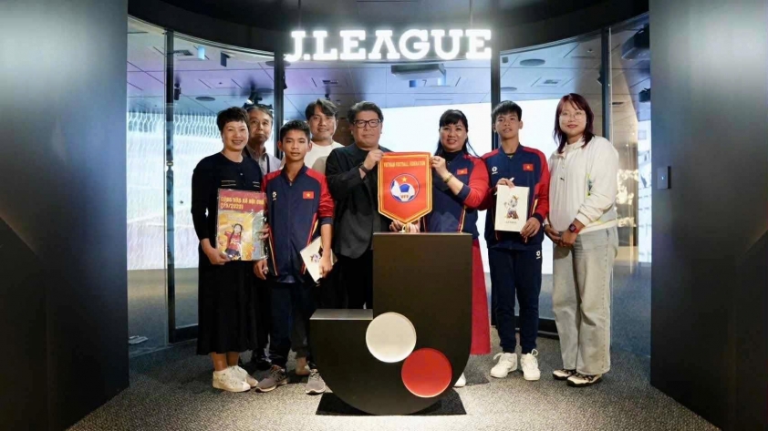 On October 18, the selected members departed for Japan. As planned, today, the outstanding players, exemplary coach Vũ Anh Tuấn, along with the tournament organizers, visited the headquarters of the Japan Football Association (JFA) and JLeague. The group was introduced to Japanese football and its goal of winning the World Cup in the future.