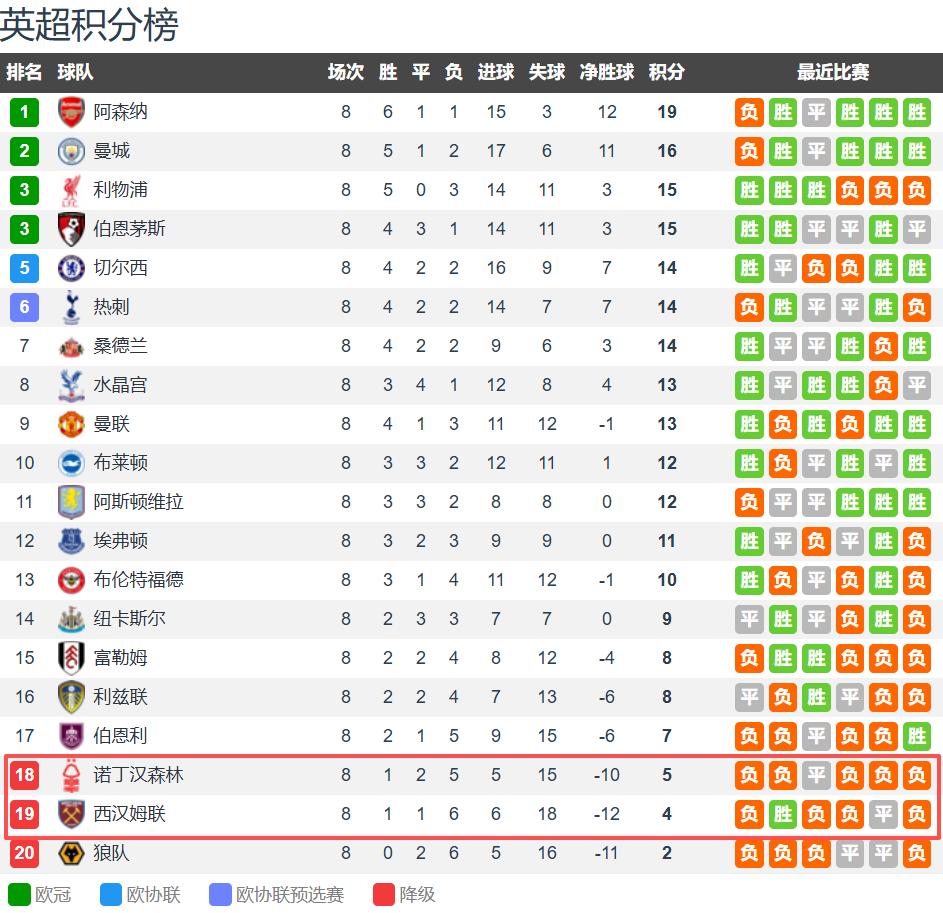 After eight rounds of the Premier League, with Burnley’s 2-0 home victory over Leeds United allowing them to comfortably escape the relegation zone, both Nottingham Forest and West Ham United have sunk deeper into danger. Nottingham Forest sit third from bottom with 5 points from 1 win, 2 draws, and 5 losses, while West Ham are second-last with 4 points from 1 win, 1 draw, and 6 losses. Both teams have just a 2-point cushion over the Premier League’s bottom club, Wolves. It’s clear that Nottingham Forest’s decision to sack Nuno has backfired, as both his former and current clubs are now sounding the alarm over relegation threats.