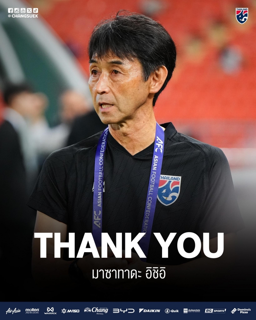 The Football Association of Thailand (FAT) has just announced the departure of Head Coach Masatada Ishii, who has led the national team since December 2023. The decision was made after both parties failed to reach a consensus on the direction and coaching philosophy recently.
