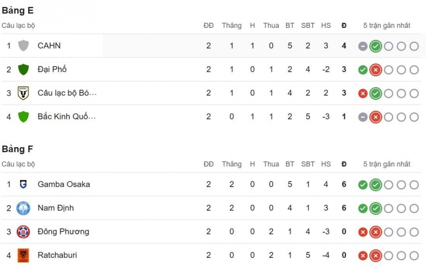 Nam Dinh has also impressed by winning their first two matches, tied on points with Gamba Osaka but behind on goal difference, placing second in Group F. Although the Japanese team is considered stronger, coach Vu Hong Viet’s squad boasts quality foreign players like Percy Tau, Caique, and Marlos Brenner who can cause surprises. Securing just one point away would bring Nam Dinh closer to a spot in the round of 16.