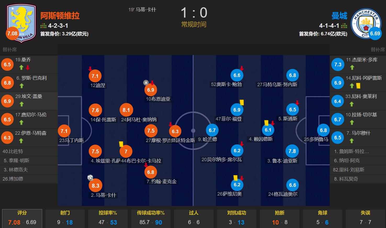 During the 9th round of the Premier League, Manchester City played away against Aston Villa, where Guardiola’s tactics backfired. What looked like a 4-1-4-1 formation actually saw center-back Stones pushed forward to defensive midfield. Stones and Reyna, both technically limited players, failed to execute possession football, leading to Villa’s control over the game, especially in midfield. Despite Haaland’s ongoing streak of 12 consecutive scoring matches, City couldn’t break through. Ultimately, Villa’s right-back Cash scored the winning goal, and City lost 0-1 away, marking their third league defeat this season. Meanwhile, Arsenal continued their strong run with a 1-0 win over the tough Crystal Palace, extending their lead over City to 6 points. Liverpool suffered a fourth consecutive league loss, and it seems Arsenal might already have no real challengers for the Premier League title this season, much like Liverpool last year.