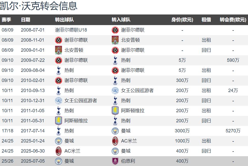 This summer transfer window, Walker left Manchester City and reluctantly joined Burnley, becoming a key part of the Clarets' defense. Burnley signed the experienced Premier League player on a free transfer, hoping Walker will help the team avoid relegation. In the past two seasons, all three promoted teams were relegated, so the three promoted clubs this season have been preparing early, with Walker being one of Burnley's assets for survival.