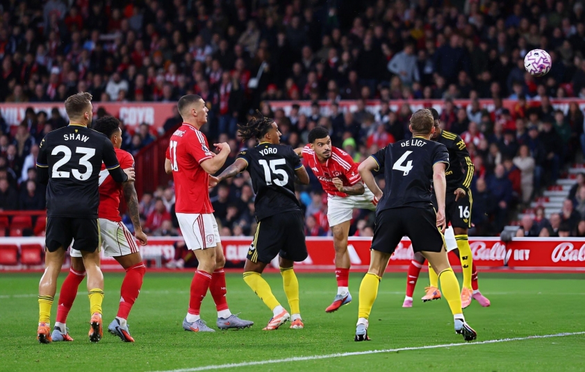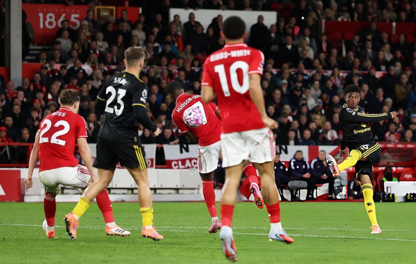 The first half between Nottingham Forest and Man Utd was fast-paced with many notable moments. After kickoff, both teams quickly implemented their familiar tactics; Nottingham showed strong cohesion with elegant passing moves, while Man Utd responded with smooth midfield combinations.