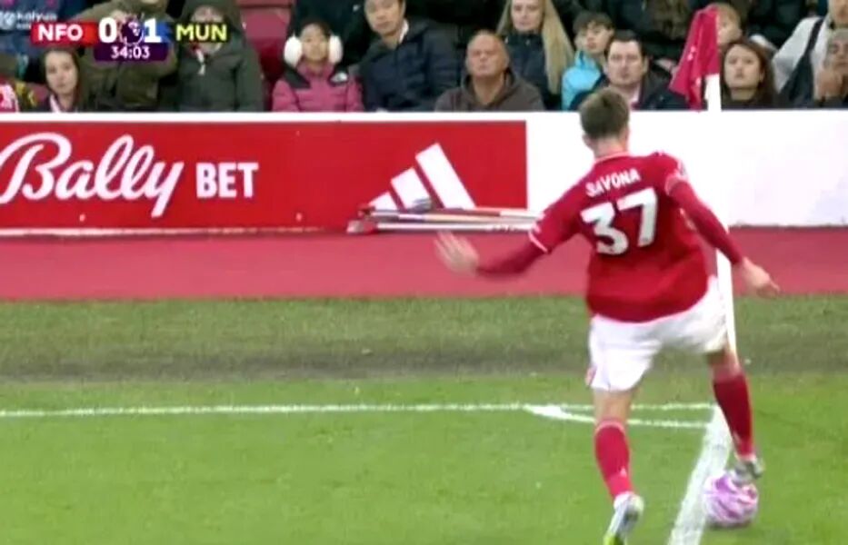 The match situation changed due to a mistaken call by referee Darren England. Nicolo Savona controlled the ball on Nottingham Forest’s own goal line, but the referee ruled the ball out of play and awarded a corner to Manchester United.