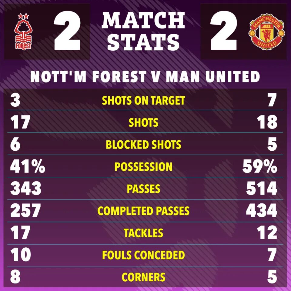 Amad had a chance to score a winner in stoppage time, but although his shot beat the goalkeeper, it was cleared off the line by Murillo. Manchester United had to settle for a 2-2 draw. Considering the gameplay and statistics, this result was quite fair.