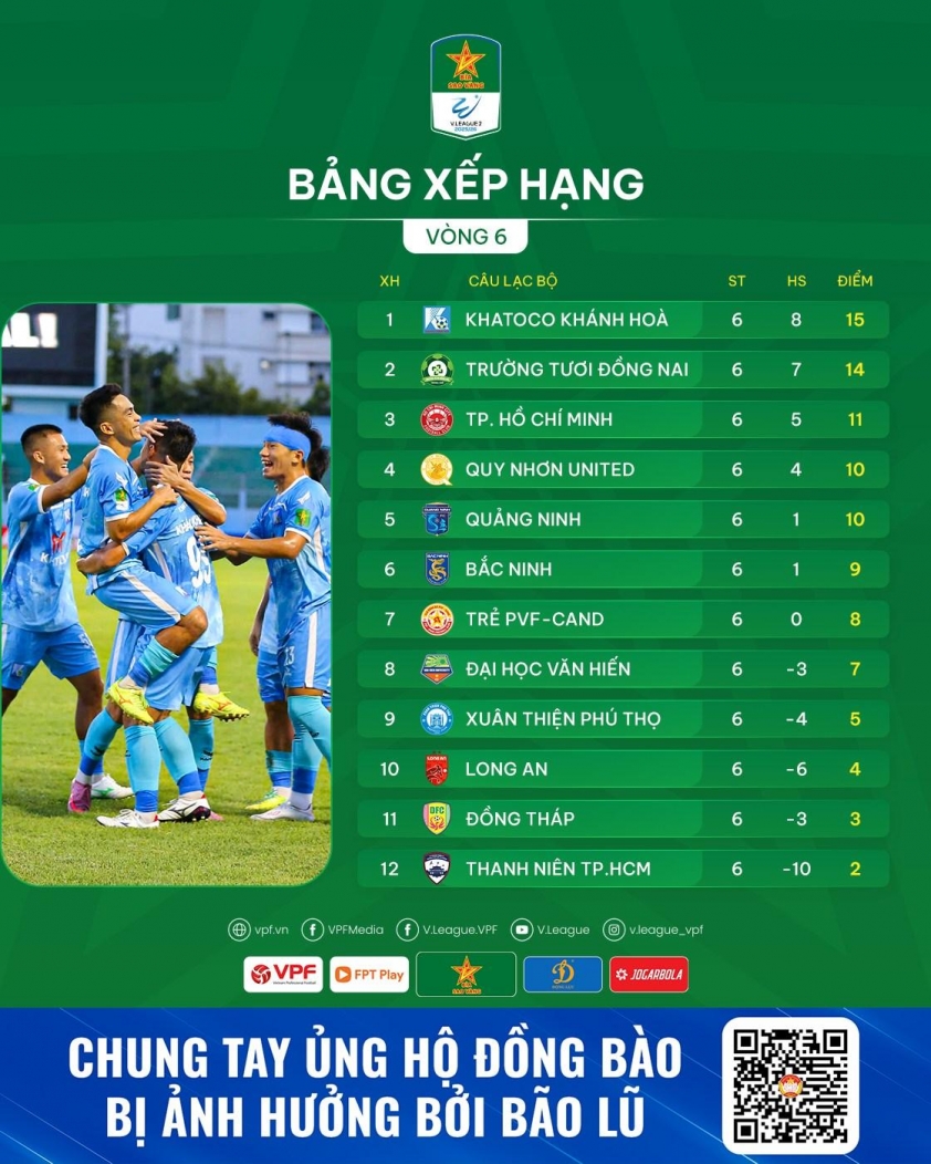 Quy Nhơn United secured a crucial 3-1 win over TP.HCM, moving closer to the top tier (currently 4th with 10 points, just behind TP.HCM’s 11 points). This marks their second consecutive victory, boosting morale ahead of the upcoming “big match” against Trường Tươi Đồng Nai at Bình Phước in Round 7.