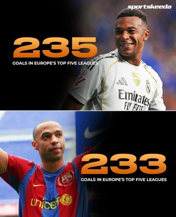 Kylian Mbappe is continuing to build his legendary journey with Real Madrid. His brace against Valencia in the recent 4-0 victory not only helped the Spanish Royal Club strengthen their lead in La Liga but also allowed the French star to surpass Thierry Henry’s goal tally in Europe’s top leagues.