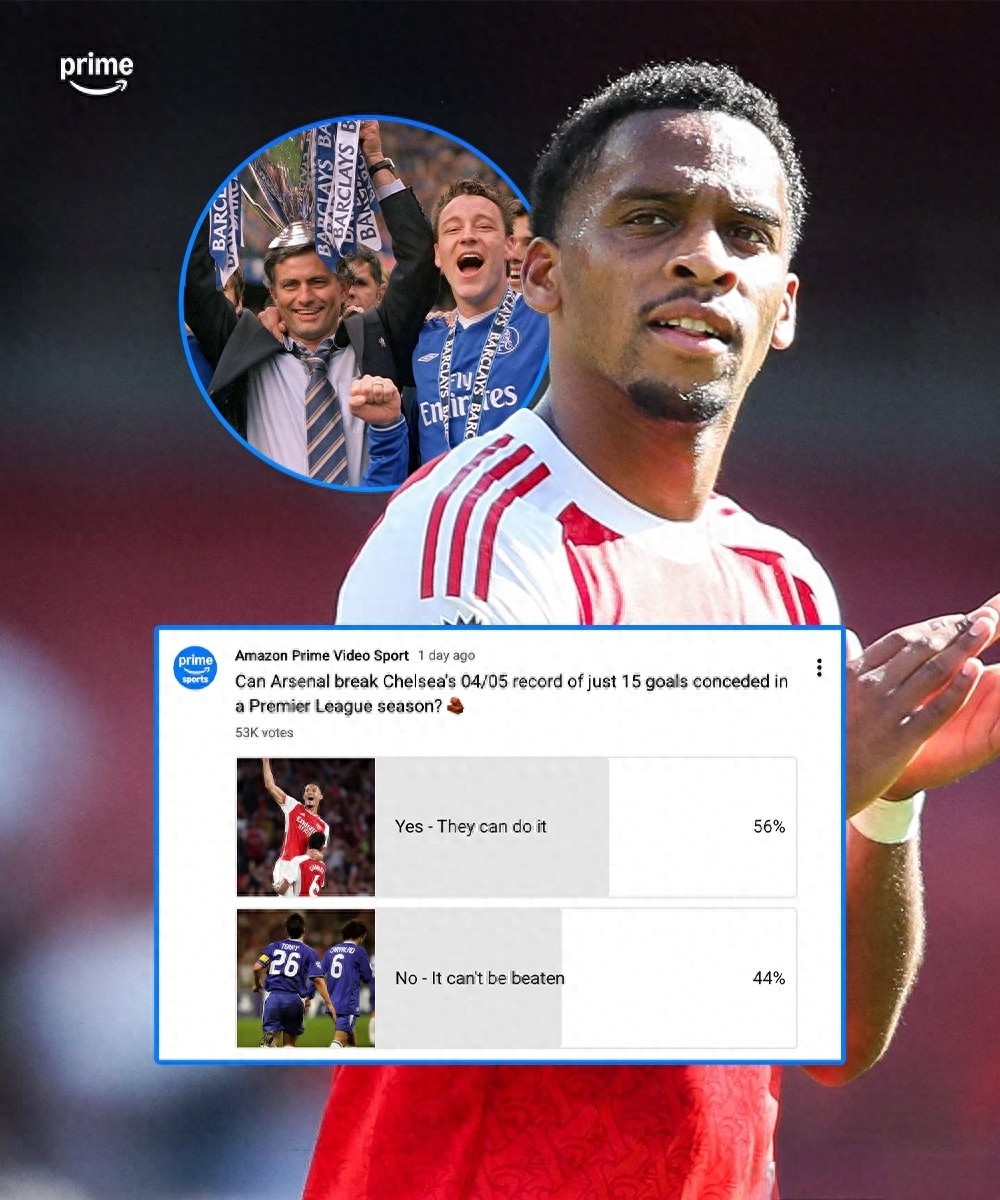 In response, the foreign media outlet Amazon launched a poll where over 50,000 fans voted. An impressive 56% believe Arsenal can match Chelsea’s record of conceding only 15 goals in the 2024-05 Premier League season. What about you? Do you think Arsenal can break the Blues’ record?