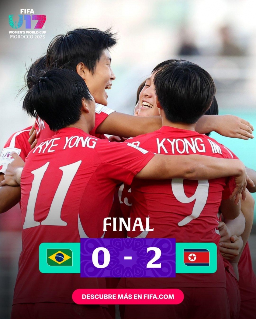 The North Korea U17 women's team maintained their impressive performance by overcoming the current champions Brazil with a 2-0 victory to qualify for the 2025 U17 World Cup final, while also setting a never-before-seen record in the competition's history.