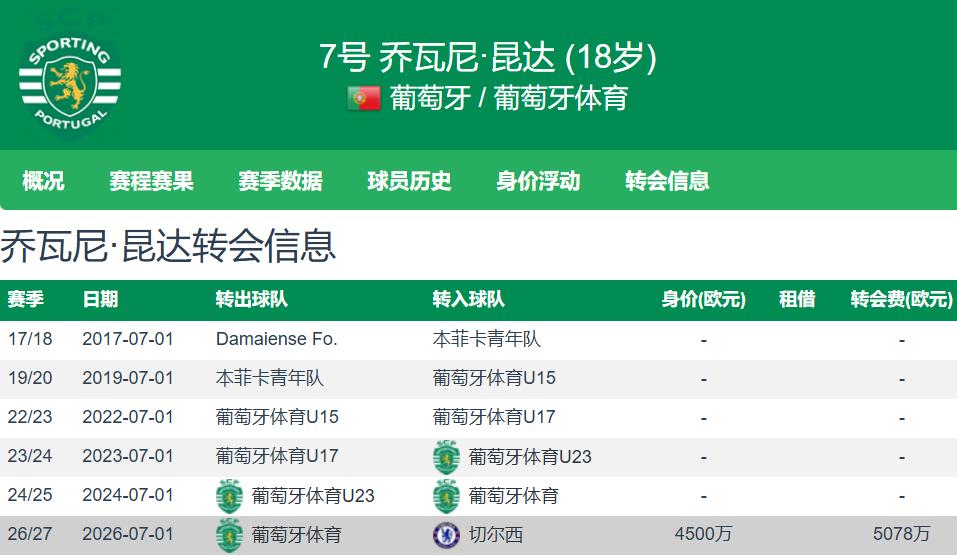 Chelsea reached an agreement with Sporting CP this March to sign the Portuguese prodigy Kunda for a transfer fee of 50.78 million euros. Kunda will continue to play and develop at Sporting CP this season and will join Chelsea after the season ends, arriving next summer to participate in preseason training ahead of the 2026-27 campaign. Kunda came through Benfica’s academy before moving to Sporting CP and has broken several records, including becoming the youngest scorer in the Primeira Liga, surpassing Cristiano Ronaldo, and the youngest Sporting player to score in the Champions League. In one season, Kunda’s assist numbers even exceeded the debut season stats of Portuguese legends Ronaldo, Figo, and Nani.