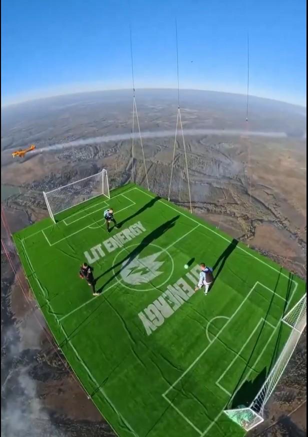 According to the team, this event was carried out as an extreme sports challenge and a technical test for the engineers who designed the suspended platform. The performance aimed to establish a new record for the highest altitude football playing ever documented.