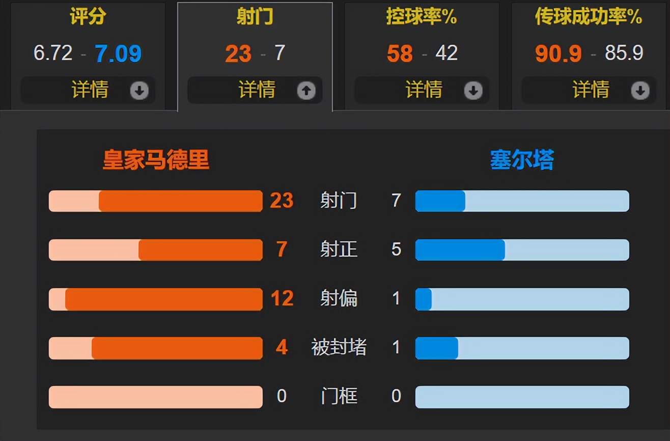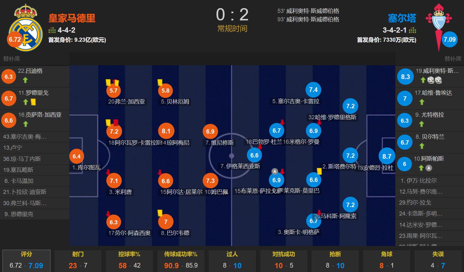 Throughout the match,Real Madrid held 58% possession, with 23 total shots, 7 on target; Celta had 7 shots, 5 on target.Despite Real Madrid’s dominance in stats, their loss reveals flaws in Alonso’s player selection and tactics.