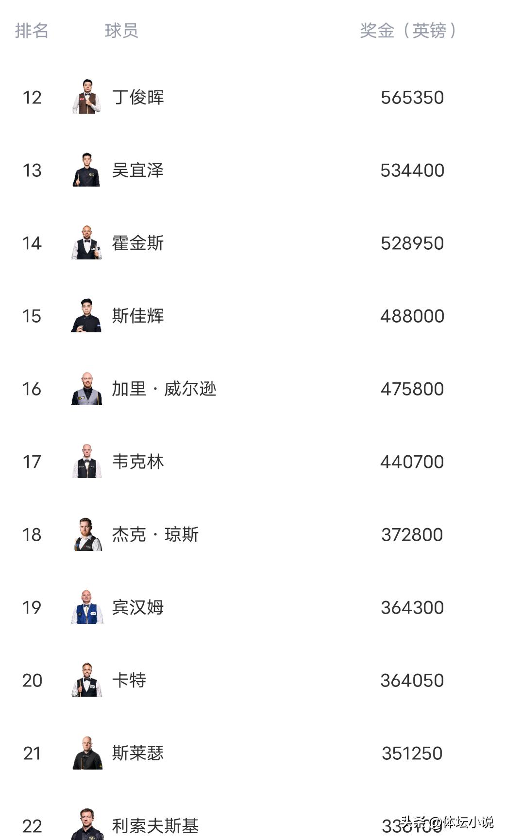 Trump has had a tough season, reaching three finals but finishing runner-up each time: losing to Lisowski at the Northern Ireland Open, and twice to Selby at the Champion of Champions and UK Championship. Despite winning £100,000, he remains firmly in first place with a significant lead. However, these two seasons have been difficult for Trump—last season he was dominated by Kyren Wilson, and this season by Selby. His frequent runner-up finishes in major events have been disappointing, making his performance in the three big tournaments quite underwhelming.