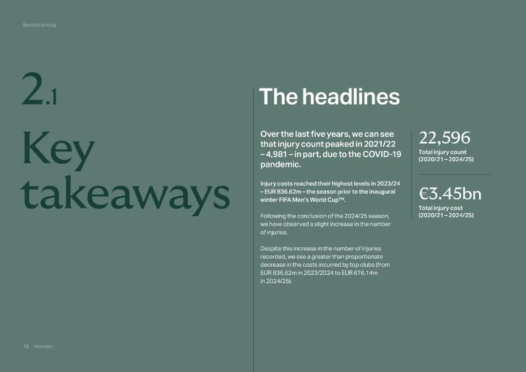 Over 3.45 billion euros lost in 5 seasons; injuries are the biggest “loss source” in the top five leagues